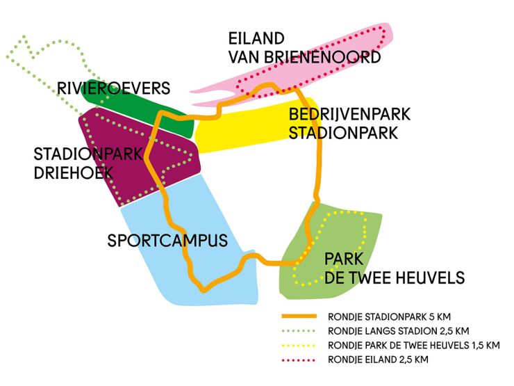 Tegelijkertijd wordt gekeken om het pad langs het oude Varkenoord richting de Stadionlaan tijdelijk een Rondje uitstraling te geven. Tijdelijk, omdat na de oplevering van het nieuwe scholencomplex in 2025 het Rondje daar wordt opgenomen in het park.